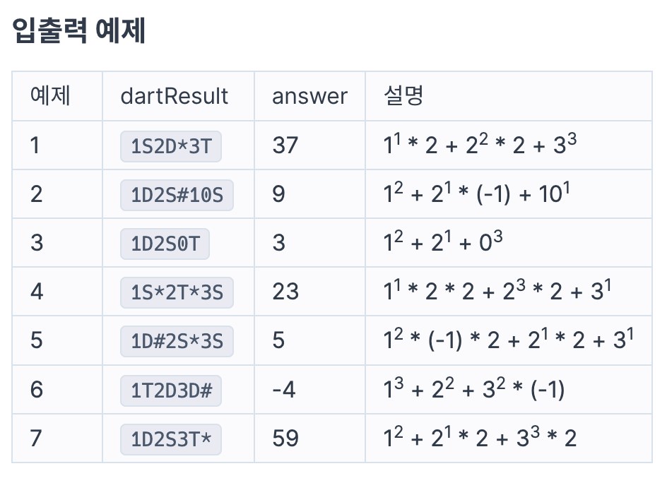 갓 입사한 무지는 코딩 실력을 인정받아 게임의 핵심 부분인 점수 계산 로직을 맡게 되었다. 다트 게임의 점수 계산 로직은 아래와 같다.