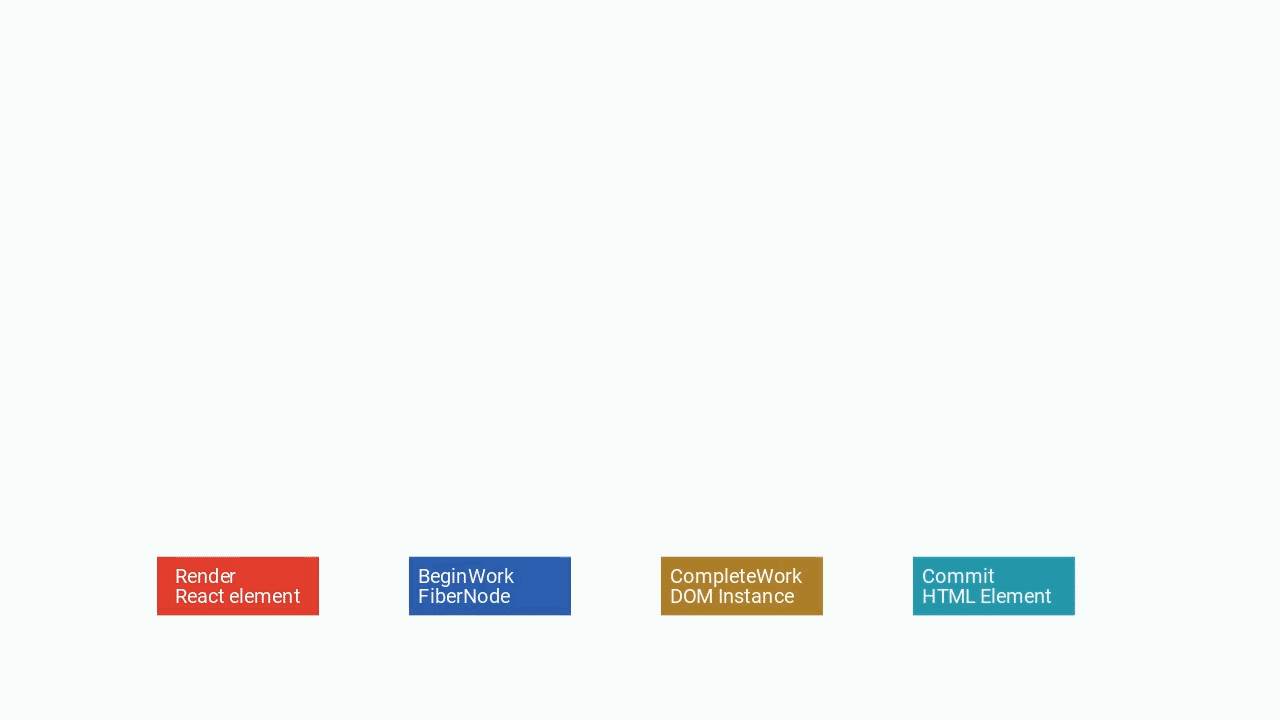 부모에서 자식으로 차례대로 fiber Node로 변환되면서 자식이 없다면 DOM 인스턴스로 생성됩니다.