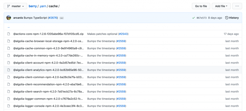 사진은 yarn berry 깃 레포에서 사용하는 zero-install의 예시입니다.